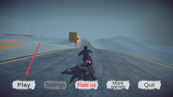 1、在主界面,點(diǎn)擊【Play】,進(jìn)入摩托駕駛的雪地賽道場景。