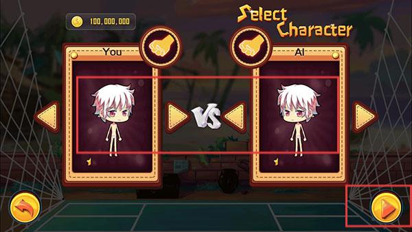 2、然后選擇自己的人物和對方的角色,點擊屏幕右下角的按鈕進入下一步。