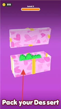 1、在“PackyourDessert”環(huán)節(jié),將甜點(綠色物品)裝入粉色禮盒,完成包裝。