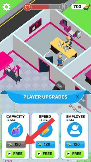 1、畫面呈現(xiàn)辦公室場景及PLAYERUPGRADES(玩家升級)界面,涉及經(jīng)營升級玩法,用于提升辦公相關(guān)能力,屬于典型的模擬經(jīng)營升級建筑/能力的交互界面。