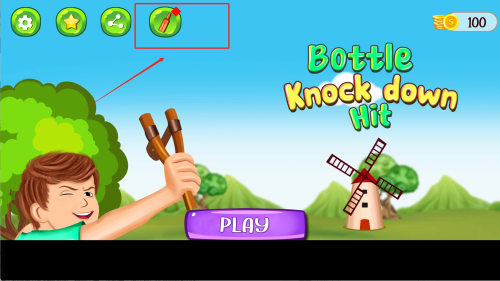 2、按住屏幕拖動(dòng)調(diào)整彈弓射擊角度,瞄準(zhǔn)風(fēng)車背景中的玻璃瓶目標(biāo),注意風(fēng)力對(duì)彈道的影響。