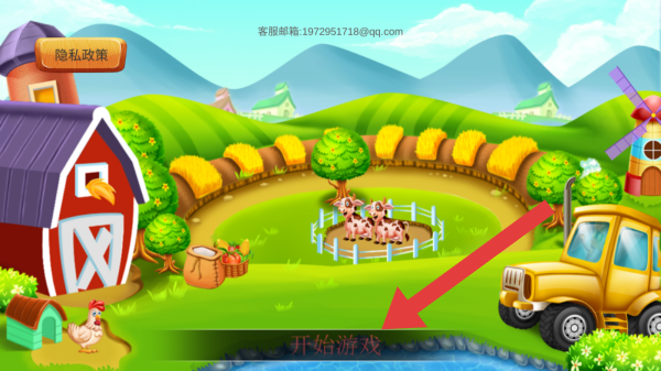 1、包含農(nóng)場(chǎng)場(chǎng)景(有谷倉(cāng)、奶牛、雞、拖拉機(jī)、風(fēng)車(chē)等),玩家點(diǎn)擊【開(kāi)始游戲】進(jìn)入農(nóng)場(chǎng)經(jīng)營(yíng)環(huán)節(jié)。