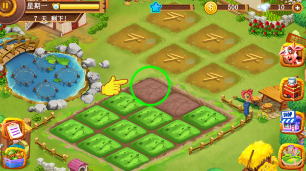 3、有農(nóng)田(已耕種和待耕種的土地)、池塘、農(nóng)舍、稻草人、動(dòng)物、各類(lèi)功能圖標(biāo),是模擬農(nóng)場(chǎng)日常經(jīng)營(yíng),玩家需耕種、管理農(nóng)田,完成任務(wù)推進(jìn)。