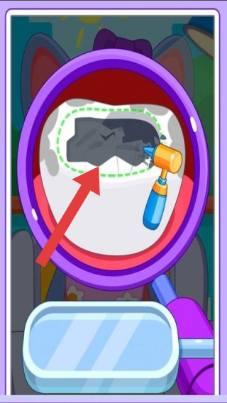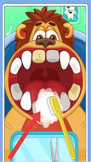 2、呈現(xiàn)為動物(或角色)治療牙齒的場景,玩家扮演牙醫(yī),使用工具(如錘子狀器械)修復(fù)牙齒問題,專注于牙科診療操作玩法。