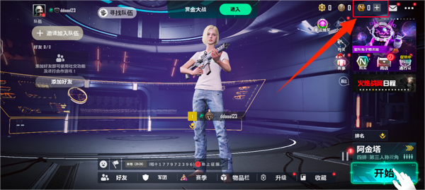 1、打開絕地求生未來之役國際服官方正版,點擊下圖所示的+號按鈕。