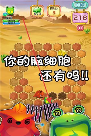 2、沙漠關(guān)卡,應(yīng)對“你的腦細胞還有嗎!”挑戰(zhàn),觀察六邊形地圖,避開怪物,優(yōu)先挖關(guān)鍵格子,保角色存活。