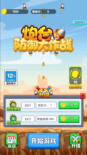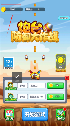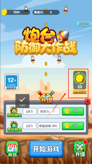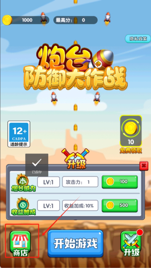 2、戰(zhàn)斗結(jié)束后進(jìn)入商店界面,優(yōu)先消耗100金幣升級炮臺威力提升攻擊力,或花費(fèi)500金幣強(qiáng)化收益加成獲取更多資源。