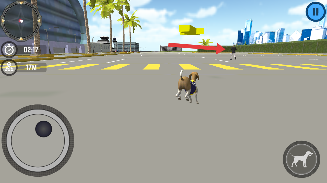 3、需要操控自己的警犬追擊前方逃跑的罪犯,利用搖桿靈活移動(dòng),完成緝拿任務(wù)。