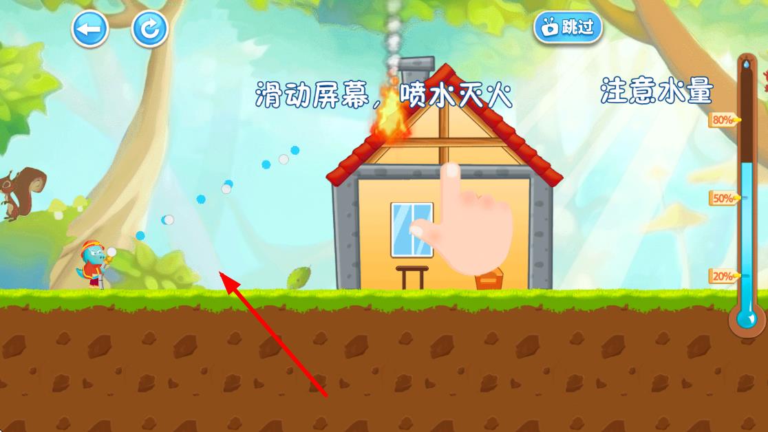 1、進入頁面后選擇恐龍隊員,駕駛消防車抵達火災(zāi)現(xiàn)場,點擊屏幕操控水槍瞄準火焰噴射,熟悉基礎(chǔ)滅火操作。