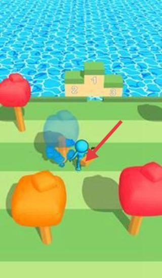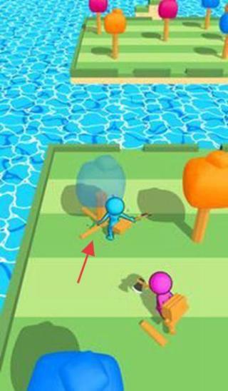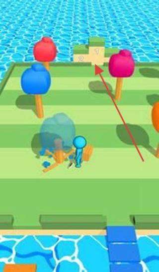 2、攜帶木材,朝箭頭指引的領(lǐng)獎臺方向,搭建路徑前進(jìn)。