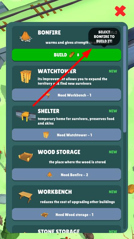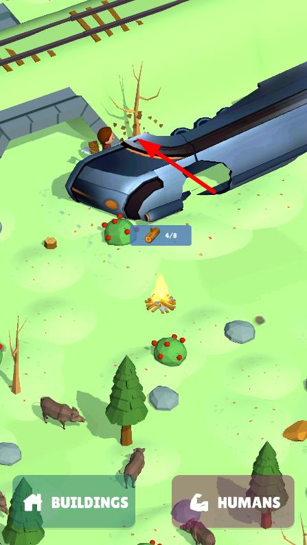 1、開局在失事火車附近收集殘骸物資,砍伐樹木制作斧頭、火把等基礎工具,搭建簡易營地抵御野獸。