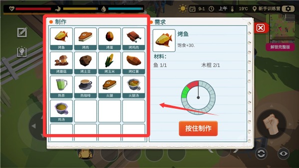 2、靠近溫暖的火堆旁,仔細(xì)挑選你渴望的美食進(jìn)行烹飪吧,但請(qǐng)記得,美味佳肴的誕生離不開充足的食材作為前提。