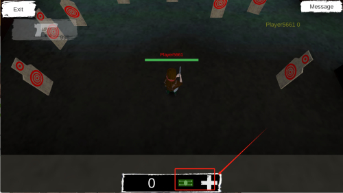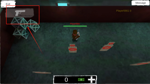1、進(jìn)入暗黑風(fēng)格場(chǎng)景后,先觀察靶標(biāo)分布位置,通過物品欄收集武器道具,注意左上角退出按鈕與右上角消息提示。