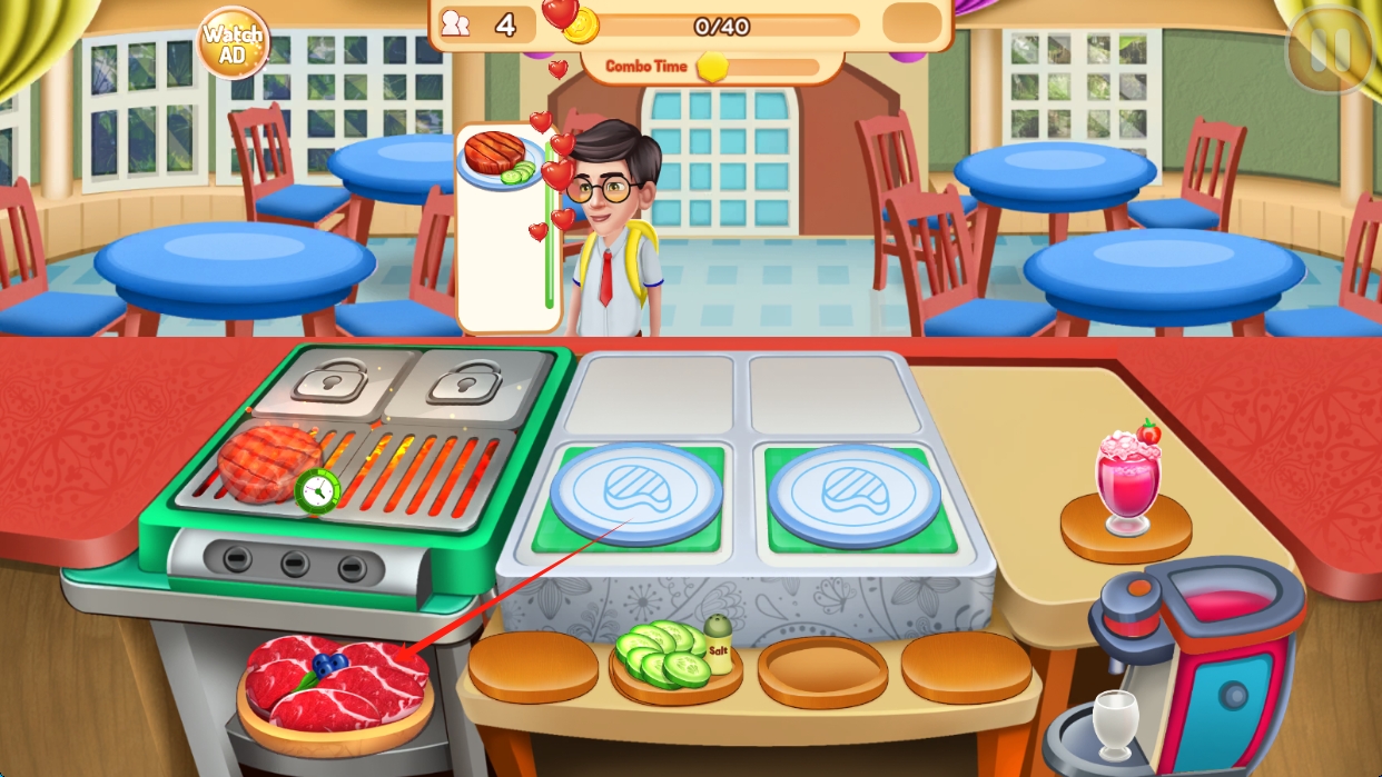 1、點擊開始游戲,利用連續(xù)完成高難度操作觸發(fā)"烹飪大師"狀態(tài),通過暫停功能調整策略與廚具。