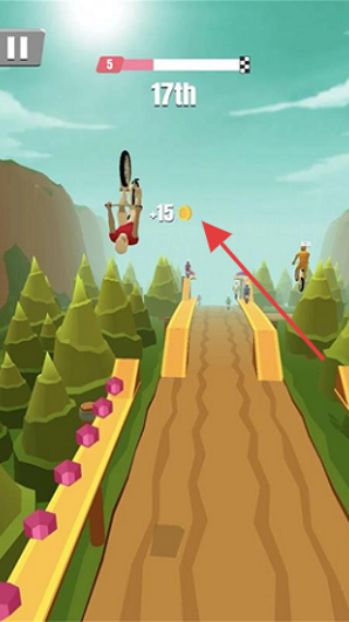 2、遇山地特技段,控車做翻轉(zhuǎn),吃【+15】金幣,攢道具升名次(17th)。