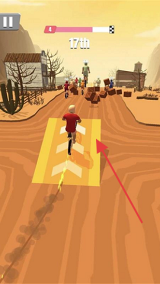 3、到沙漠路段,走黃色加速帶,避木箱障礙,保持17th,向終點(diǎn)沖刺。