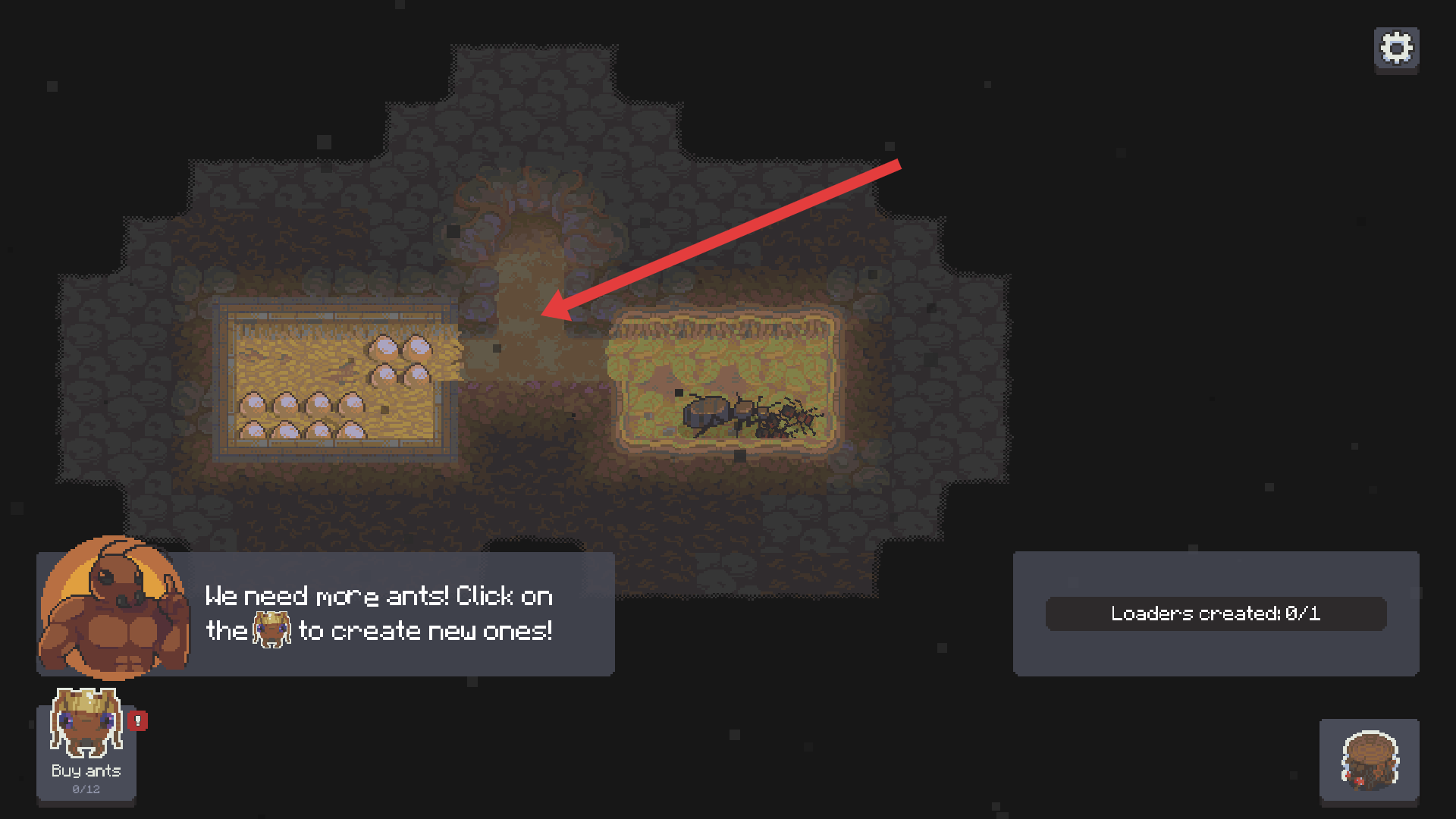 1、開(kāi)局三只工蟻加一顆卵,靠撿樹(shù)葉渣開(kāi)啟你的創(chuàng)業(yè)之路。
