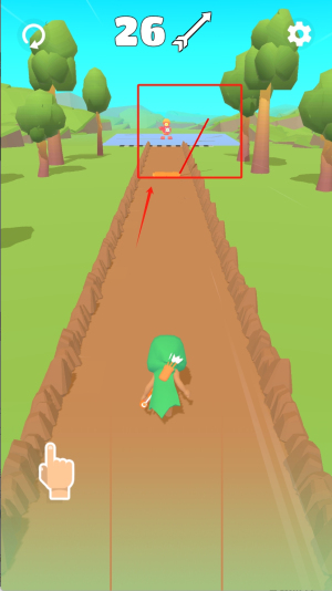 1、在叢林場(chǎng)景中操控綠衣角色沿土路奔跑,注意上方數(shù)字"26"表示剩余距離,接近紅框標(biāo)記的物體時(shí)點(diǎn)擊跳躍鍵拾取。