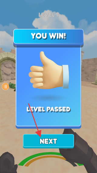 3、第1關(guān)勝利界面,顯示【YOU WIN!】【LEVEL PASSED】,點(diǎn)擊【NEXT】進(jìn)入下一關(guān)。