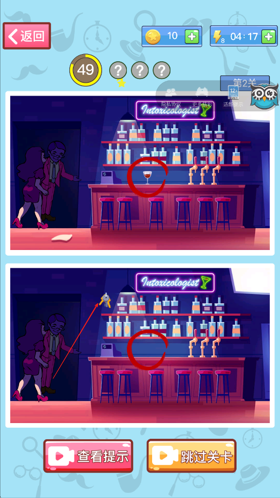 2、闖關時,留意場景中的人物、物品擺放及環(huán)境細節(jié),有些線索較為隱蔽,需結合關卡提示,發(fā)揮聯(lián)想推理能力去發(fā)現(xiàn)。