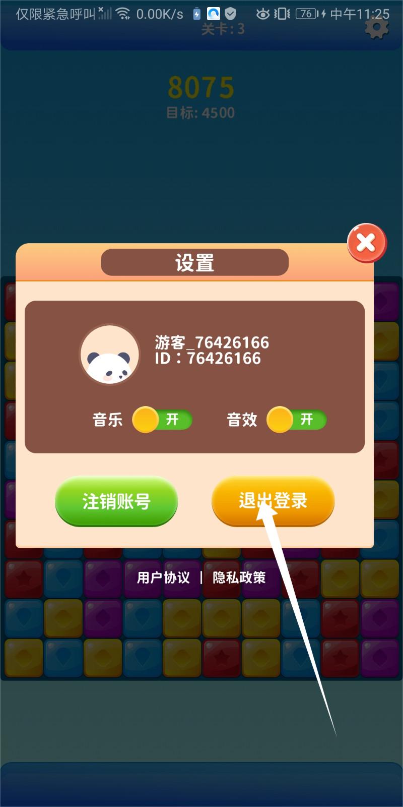 3、進入設置,調整音樂、音效,選擇賬號操作,優(yōu)化體驗,繼續(xù)消除。