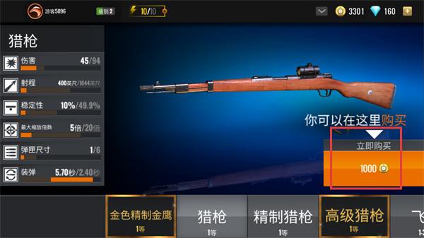 1、下載安裝完成之后進入游戲,首先我們打開商城界面,查看商城里面交易的武器,越是好的武器所需要的金幣或鉆石就越多。