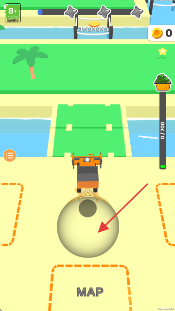 2、金幣升級機器擴張土地:在滾地過程中收集金幣,用金幣升級機器,從而收獲更多土地來鋪開最大的地毯卷,升級后的機器能更高效地工作。