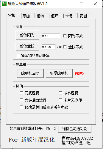 植物大戰(zhàn)僵尸無盡版修改器是專為電腦版《植物大戰(zhàn)僵尸無盡版》打造的輔助工具。玩過《植物大戰(zhàn)僵尸》的朋友都知道陽光是很重要的,沒有陽光就不能建造植物了。通過該修改器,可以把你的陽光變?yōu)闊o限,各種植物隨便造,瘋狂打僵尸。作為一款經(jīng)典的塔防游戲,植物大戰(zhàn)僵尸中有數(shù)十個關(guān)卡和不同的模式,玩家可以在花園、常規(guī)、無盡等模式中選擇。用創(chuàng)造力和無限可能改變游戲規(guī)則,讓你成為最強(qiáng)的植物守護(hù)者!立即下載植物大戰(zhàn)僵尸修改器,開啟你的超能植物之旅!趕快體驗(yàn)吧!