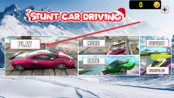 1、點(diǎn)擊首屏【PLAY】,進(jìn)入【Stunt-Car-Driving】,開啟特技賽車挑戰(zhàn),體驗(yàn)雪地賽道。