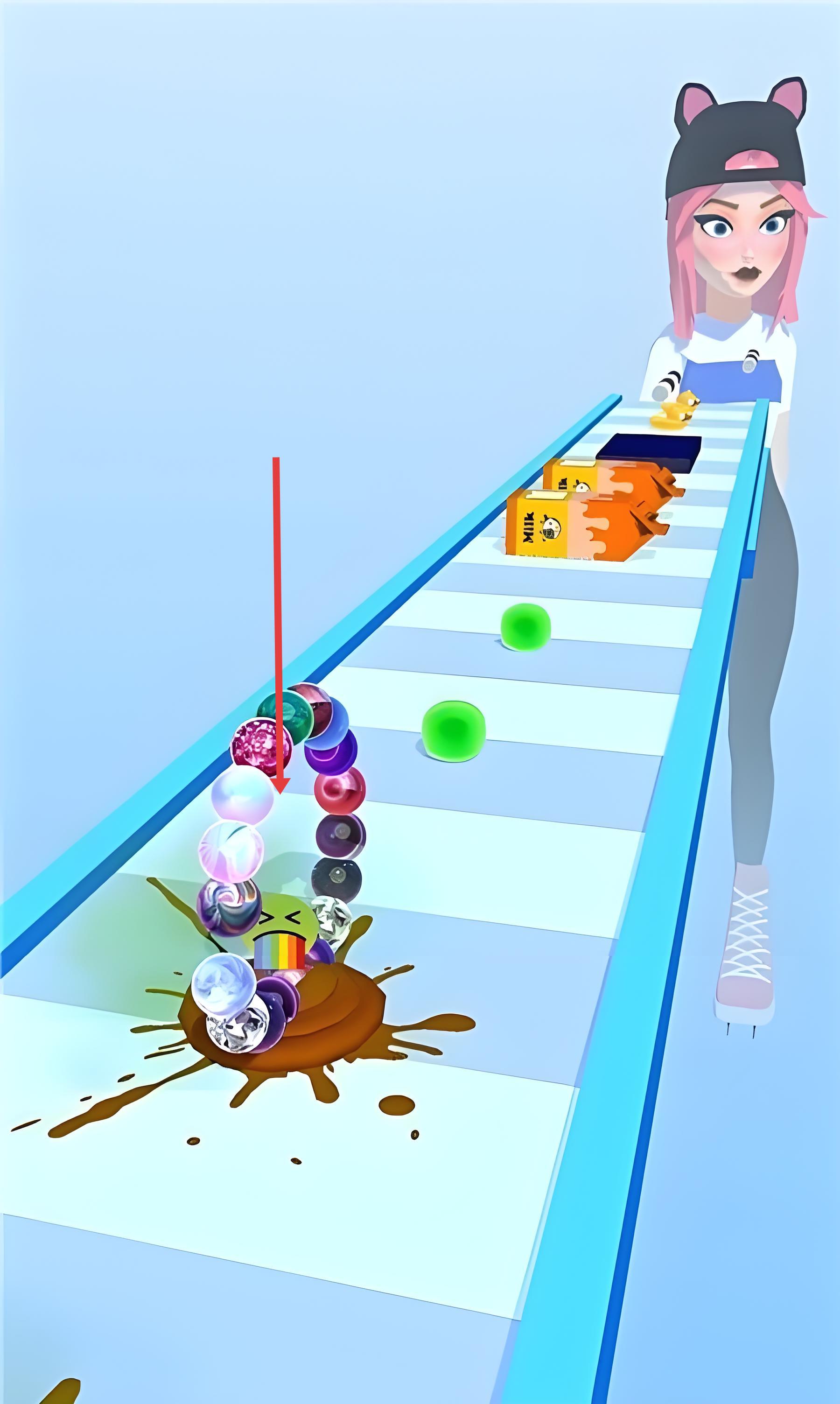 2、途中遇到旋轉(zhuǎn)臟污滾筒時(shí)跳躍躲避,碰到黏膩糖漿區(qū)域需加速通過,同時(shí)收集散落的刷子道具增強(qiáng)清潔力。