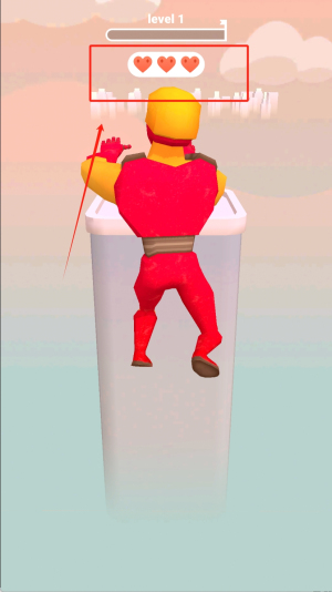 1、操控紅衣角色在白色柱體上保持平衡,注意上方心形血條避免跌落,通過左右滑動調整重心穩(wěn)定前進。