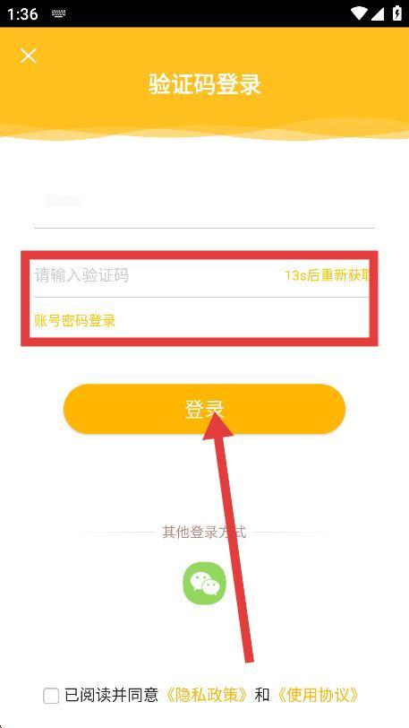 3、在驗(yàn)證碼登錄頁(yè)面,輸入手機(jī)號(hào),點(diǎn)擊獲取驗(yàn)證碼。