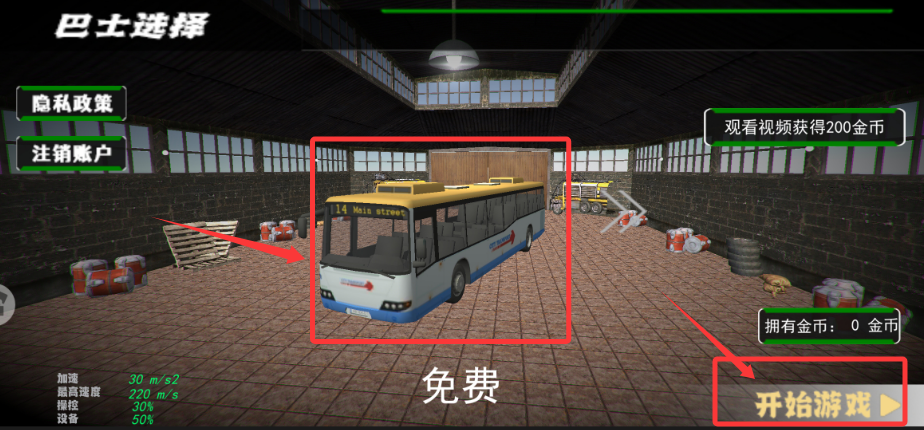 2、在車隊中選擇一輛外觀性能俱佳的巴士,點擊開始后便可發(fā)動引擎準備啟程。