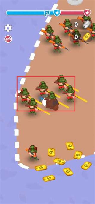 2、資源收集策略:通過攻打敵人獲取金牌銀牌,撿取時注意躲避攻擊,合理分配資源用于建造與戰(zhàn)斗,確保軍隊持續(xù)作戰(zhàn)能力。