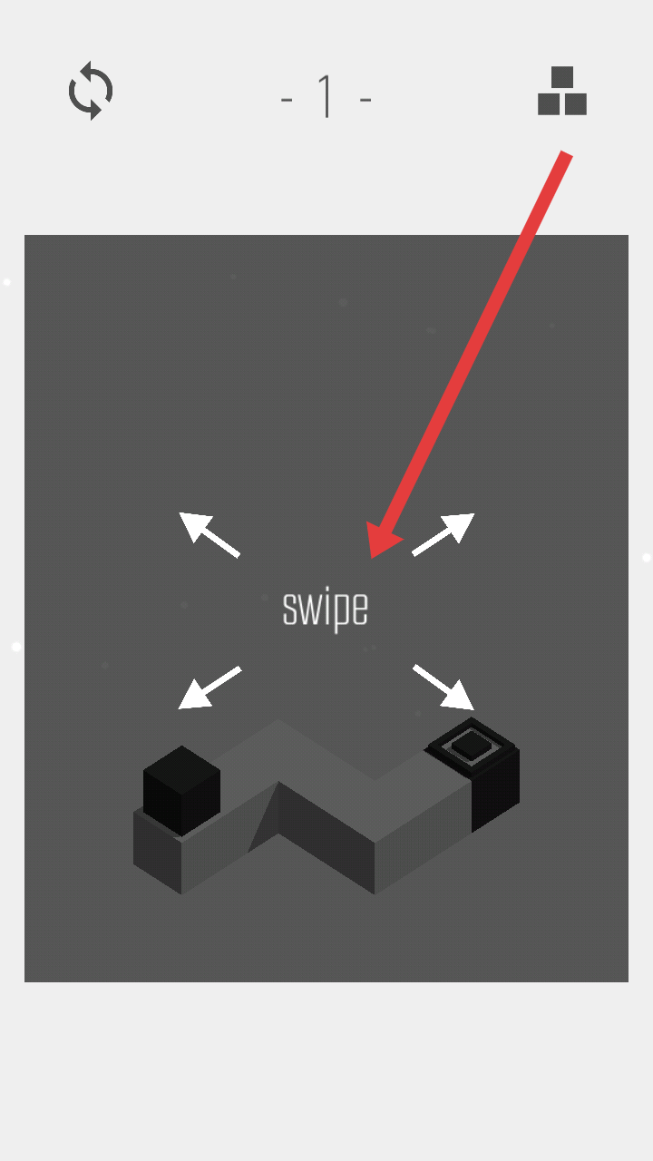 2、在關(guān)卡內(nèi),按照提示【swipe】(滑動(dòng)屏幕),操控黑色方塊在場(chǎng)景中移動(dòng),熟悉操作方式。
