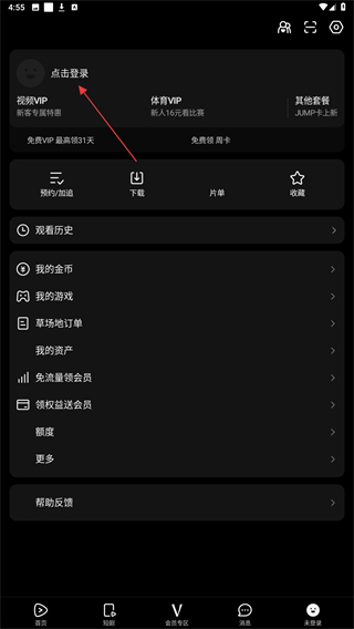1、打開騰訊視頻,點擊底部導航欄的未登錄,進入個人中心頁面。