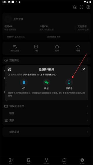 3、在登錄窗口中,選擇手機號作為登錄方式,點擊即可。