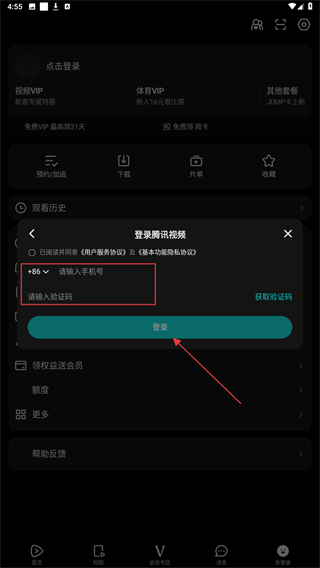 4、在登錄頁面,輸入手機號、獲取并填寫驗證碼,點擊登錄即可。