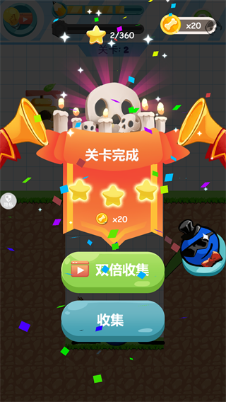 3、成功保護狗頭通過關卡,即可獲取金幣、道具等獎勵,利用獎勵解鎖新關卡或強化畫線能力,繼續(xù)開啟更多挑戰(zhàn)。