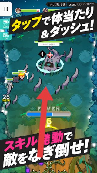 2、戰(zhàn)斗時(shí),按提示“タップで體當(dāng)たり&ダッシュ”(點(diǎn)擊沖撞&沖刺),操控角色撞擊敵人,釋放技能。