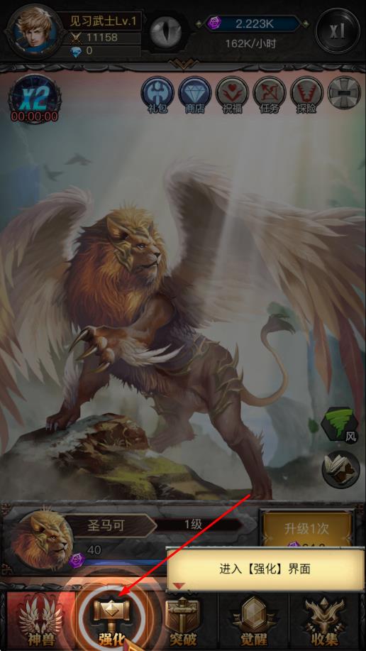 1、進(jìn)入游戲后馴服首只神話巨獸,開啟放置掛機(jī)模式,通過基礎(chǔ)戰(zhàn)斗積累資源與經(jīng)驗(yàn)。