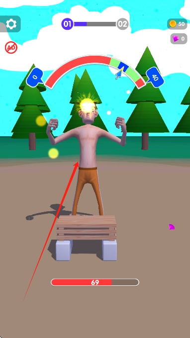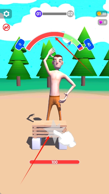 1、在新手關(guān)卡用虛擬手臂劈砍木板,熟悉點(diǎn)擊屏幕觸發(fā)劈砍的基礎(chǔ)操作。