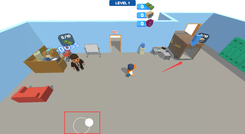 1、點擊BOSS旁箱子,收集10個完成關(guān)卡目標。