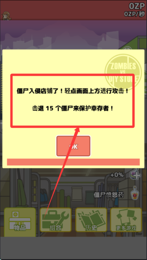 1、基礎(chǔ)玩法是通過(guò)點(diǎn)擊屏幕手動(dòng)擊殺僵尸,同時(shí)利用金幣購(gòu)買建材組合成自動(dòng)攻擊武器,雙線操作提升防御效率。