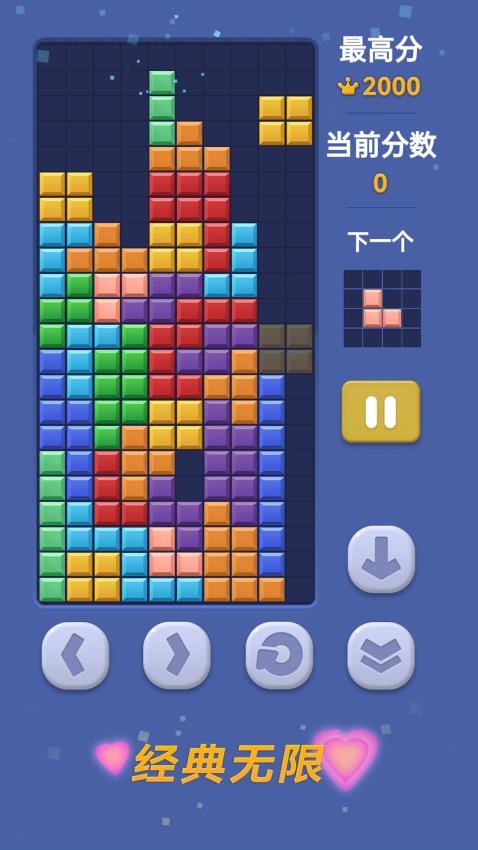 1、創(chuàng)新性的玩法融合,將傳統(tǒng)俄羅斯方塊與拼圖模式巧妙結(jié)合,既保留經(jīng)典下落玩法,又新增方條挪移等新穎機(jī)制。
