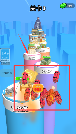 1、開局先熟悉關(guān)卡目標(biāo),尋找炸藥和道具提升破壞效率。