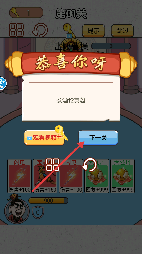 3、贏取獎勵給周瑜搭配防曬霜卡牌對抗火攻,幫張飛選購靜音耳塞防止吼塌城墻。