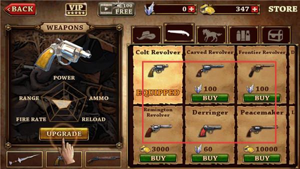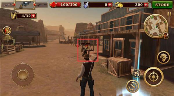 2、槍戰(zhàn)單挑操作:操控牛仔使用挑選的槍支,在單挑或任務中瞄準對手,通過移動躲避攻擊,運用射擊技巧打敗挑戰(zhàn)者完成任務。