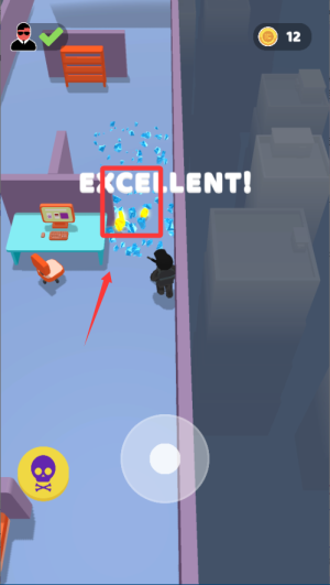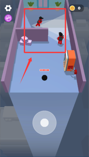 1、基礎(chǔ)潛行操作,通過虛擬搖桿控制角色移動。長按屏幕可觸發(fā)貼墻隱藏,滑動執(zhí)行翻滾等躲避動作。