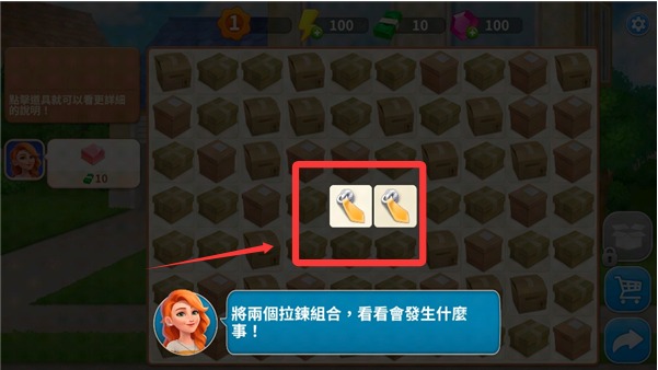3、然后就會(huì)生成新的物品,并解鎖周圍的盲盒,之后再將相同圖案的進(jìn)行組合。